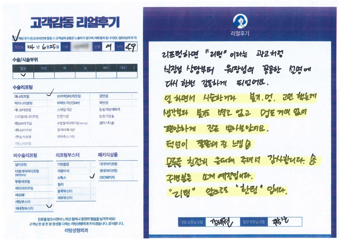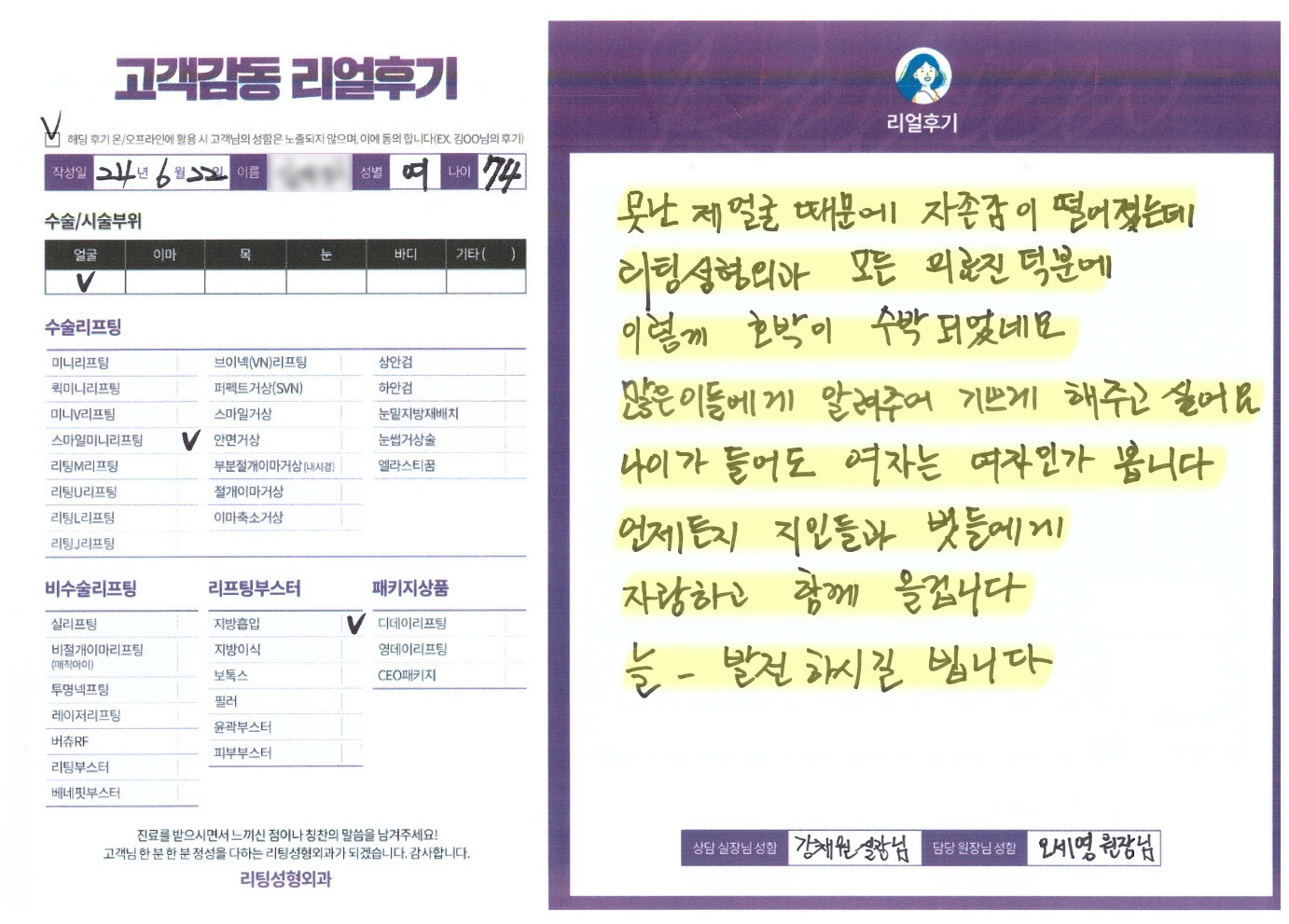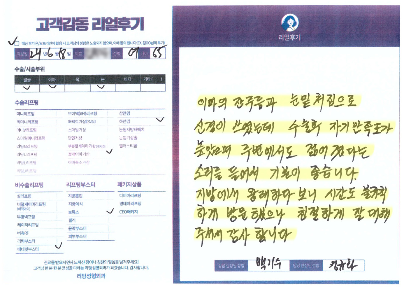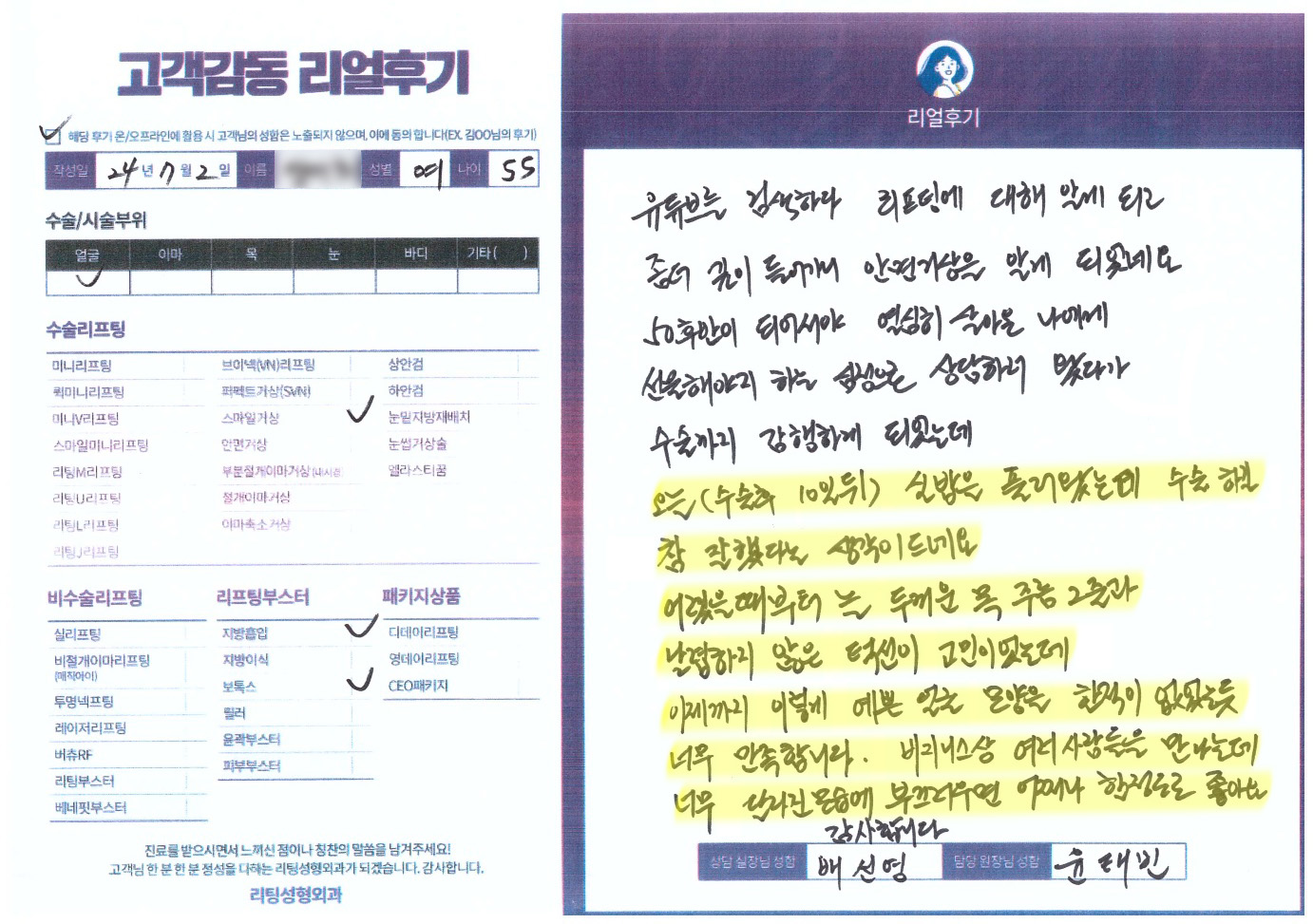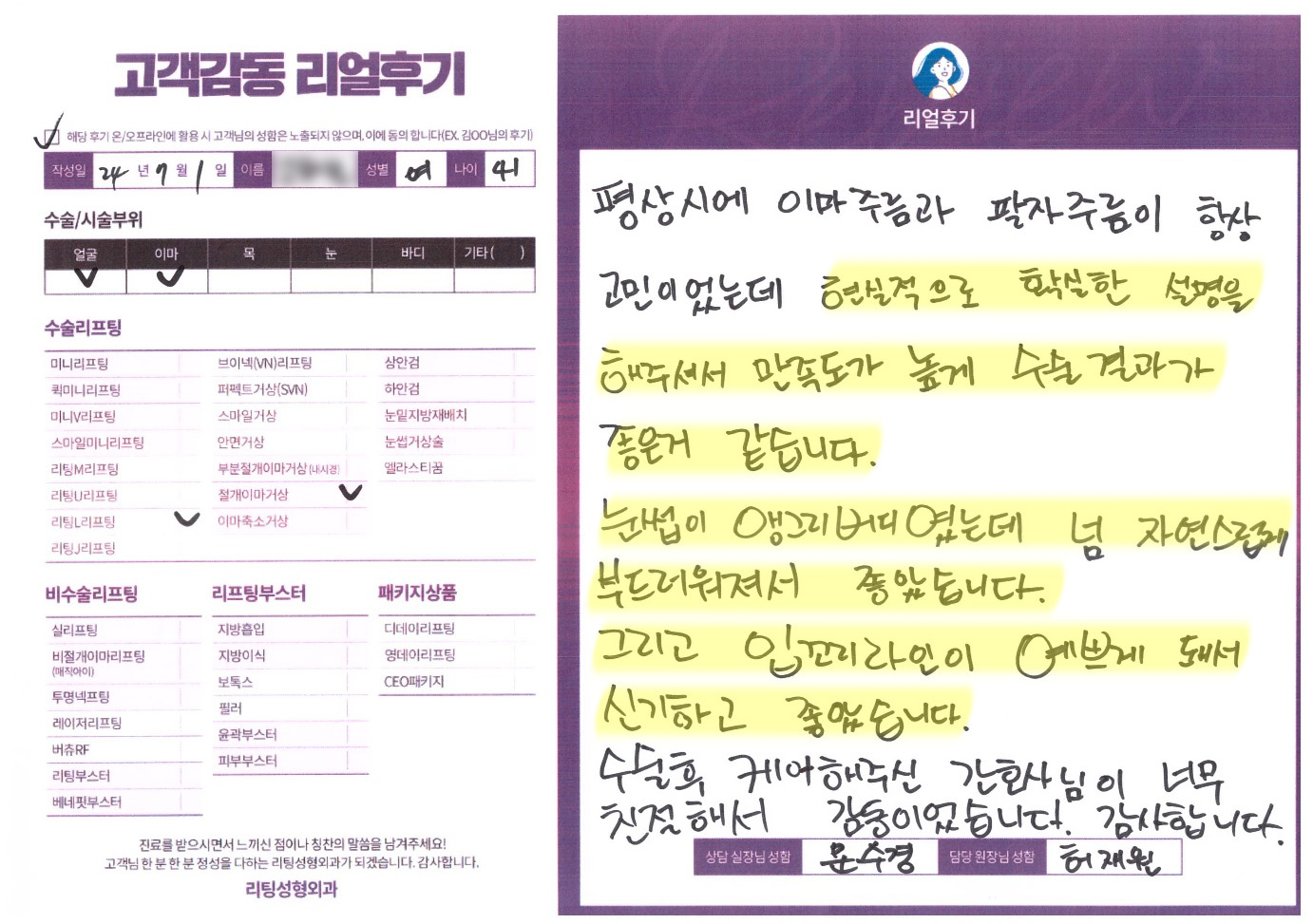 얼굴전체,이마수술리프팅