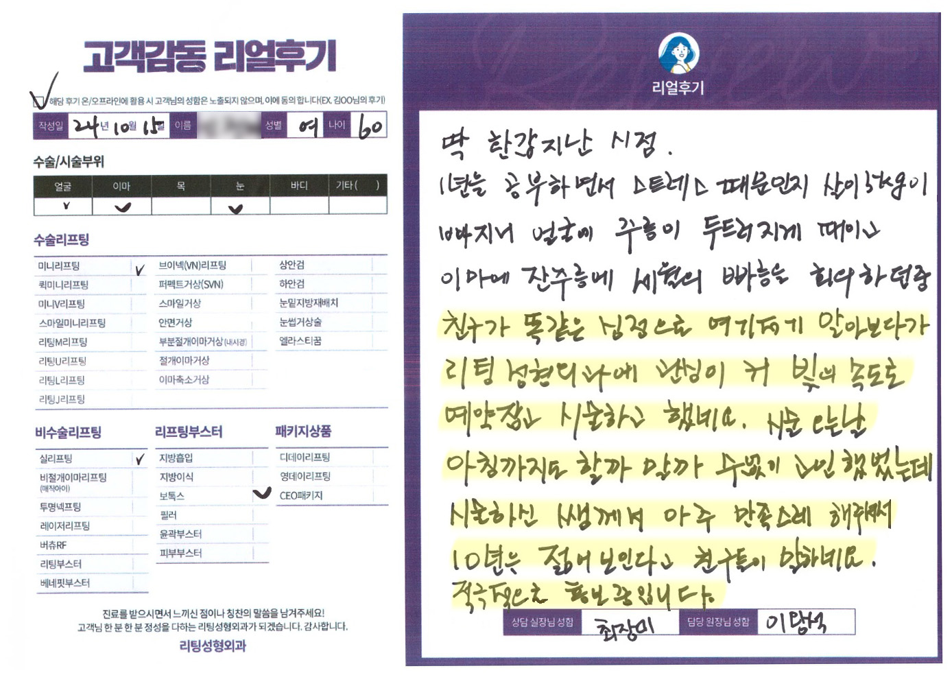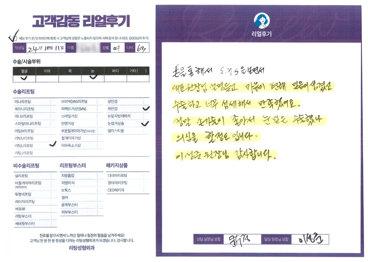 얼굴전체,눈수술리프팅