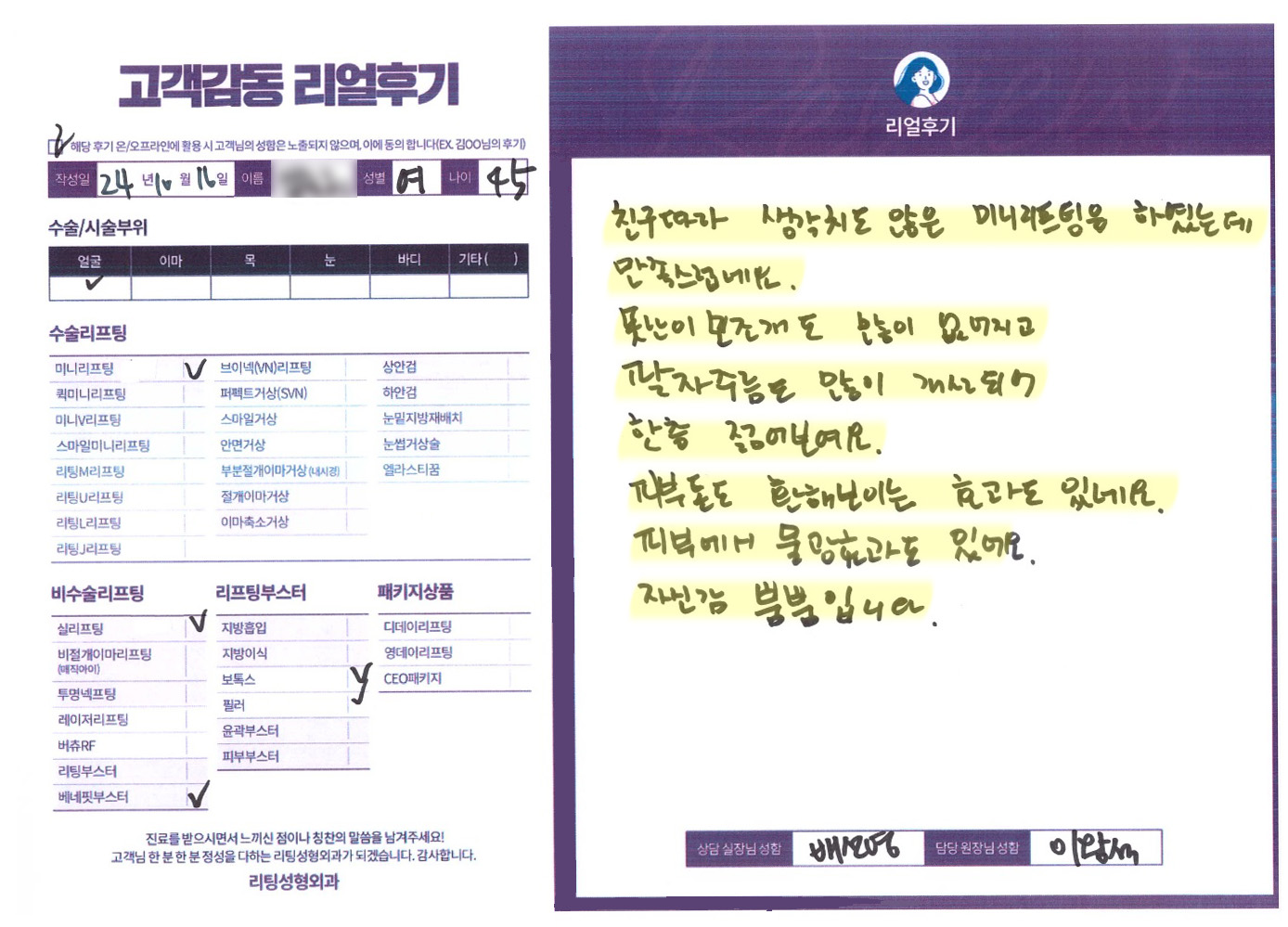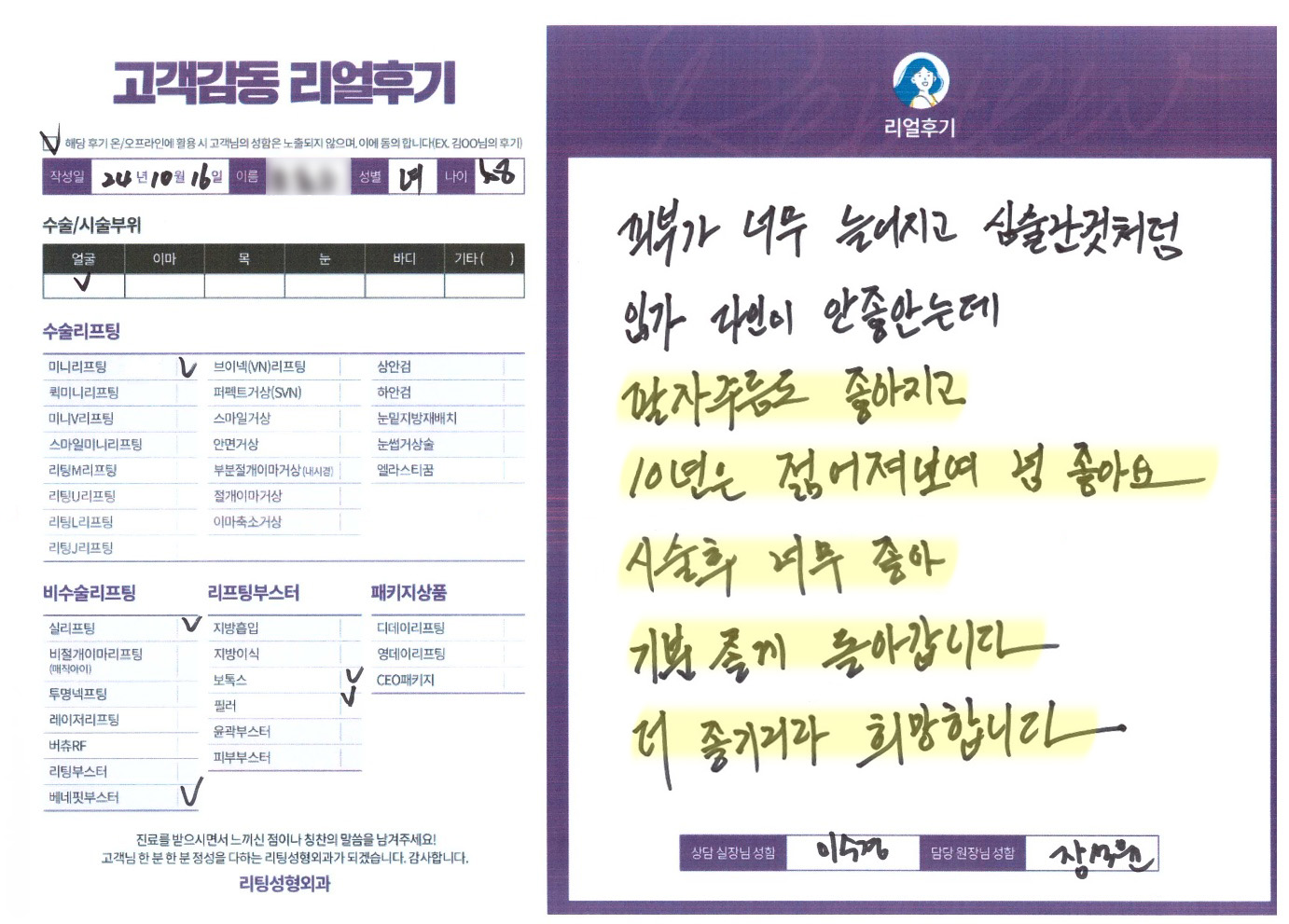 얼굴전체,이마수술리프팅,비수술 리프팅,리프팅부스터