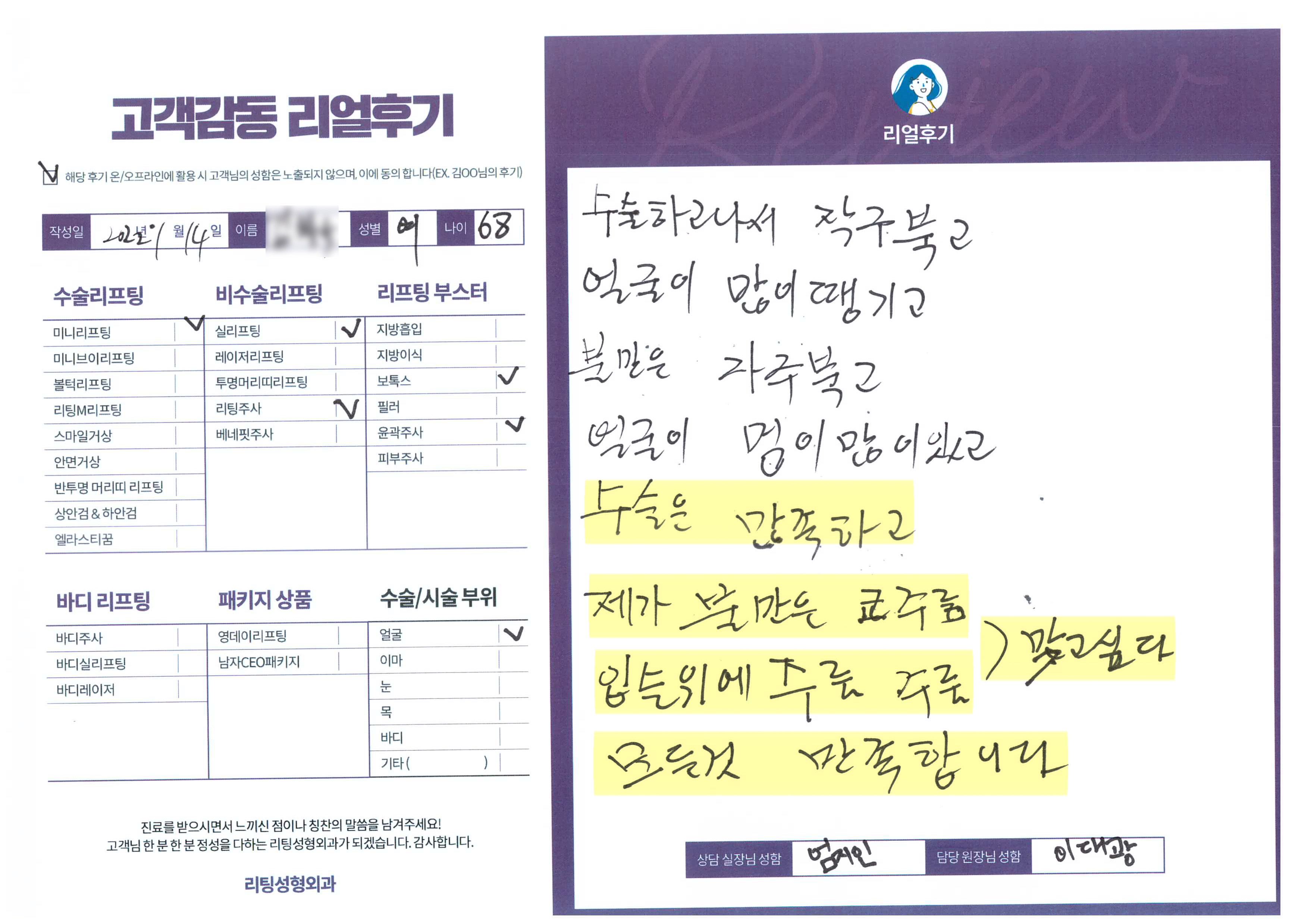 얼굴전체,눈비수술 리프팅,수술리프팅,리프팅부스터