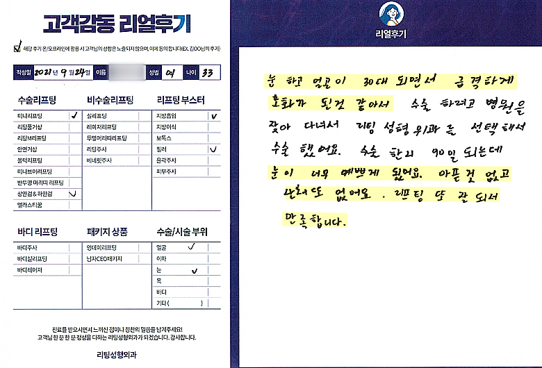 얼굴전체,눈수술리프팅,리프팅부스터
