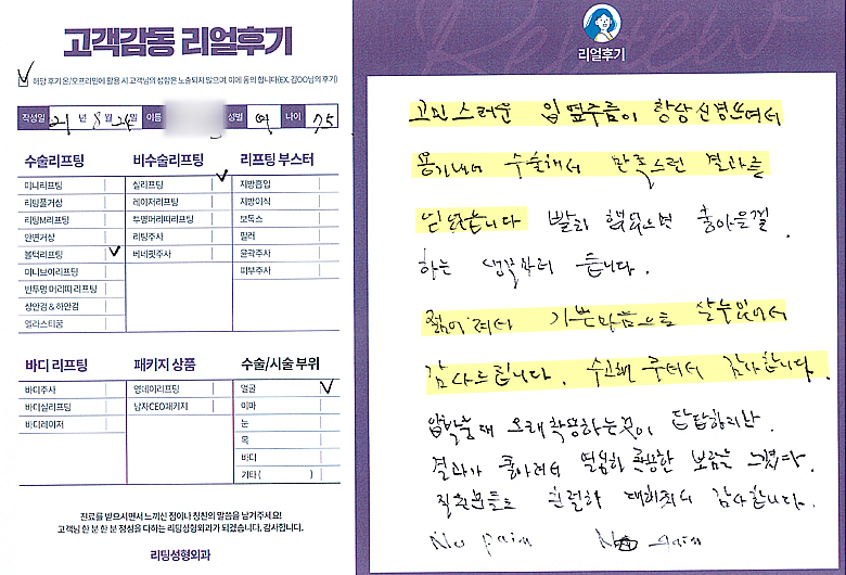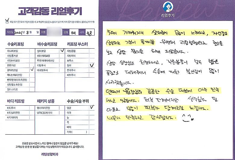 얼굴전체선OO님의 후기입니다.