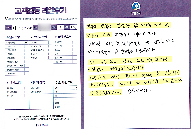 얼굴전체,이마,눈수술리프팅