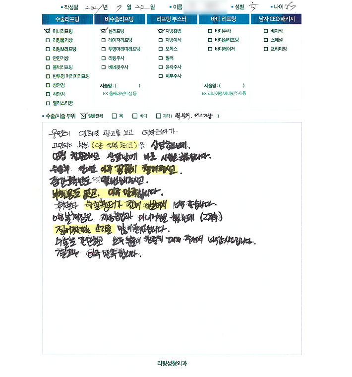 얼굴전체,눈수술리프팅