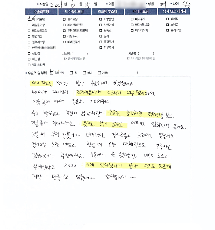 얼굴전체,목수술리프팅
