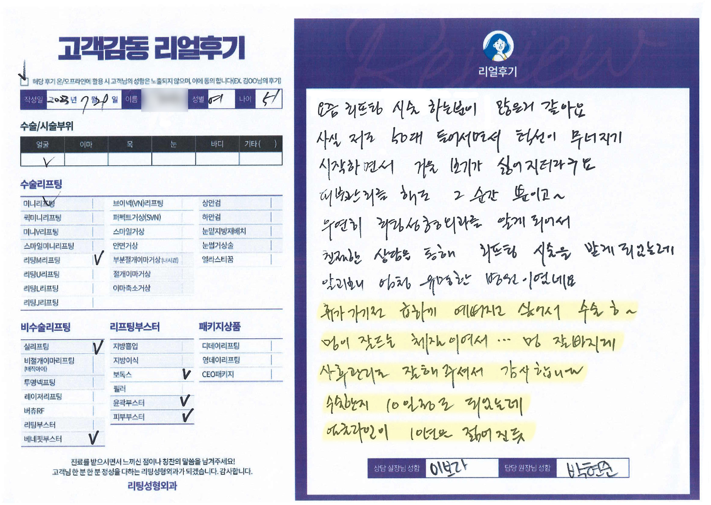 얼굴전체,이마,목수술리프팅,리프팅부스터